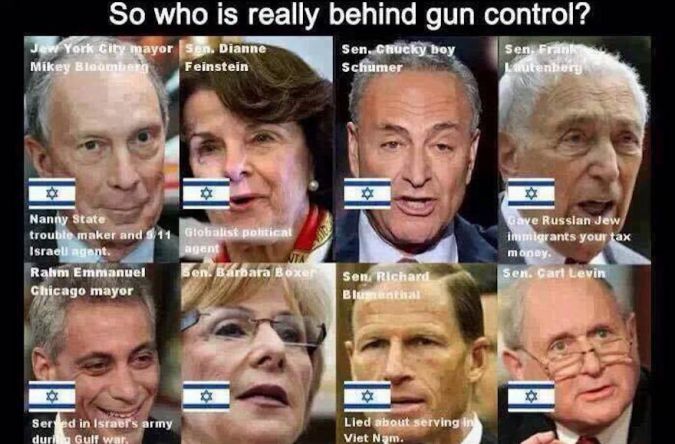 The Facebook images are labeled with mocking descriptions, such as “Jew York City Mayor Mikey Bloomberg” and “Sen. Chucky boy Schumer.” Over Emanuel’s face, text reads: “Served in Israel’s army during Gulf war.”
