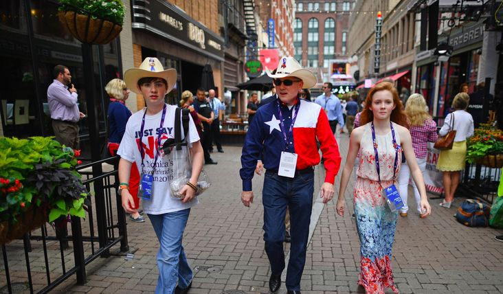 CLEVELAND (JTA) – Trumpism is visible here on the shores of Lake Erie, but not in the way nominees and what they stand for have dominated previous conventions. A few baseball caps are visible with his slogan, “Make America Great Again,” and there are discreet buttons and a service dog named Titan wearing a Trump…