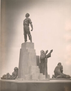 However, Davidson’s sculpture of a muscular Jewish fighter defiantly towering above a rabbi with his arms outstretched over the fallen never came to be. Neither did the other seven design proposals that were made before the project was abandoned in the 1960s.