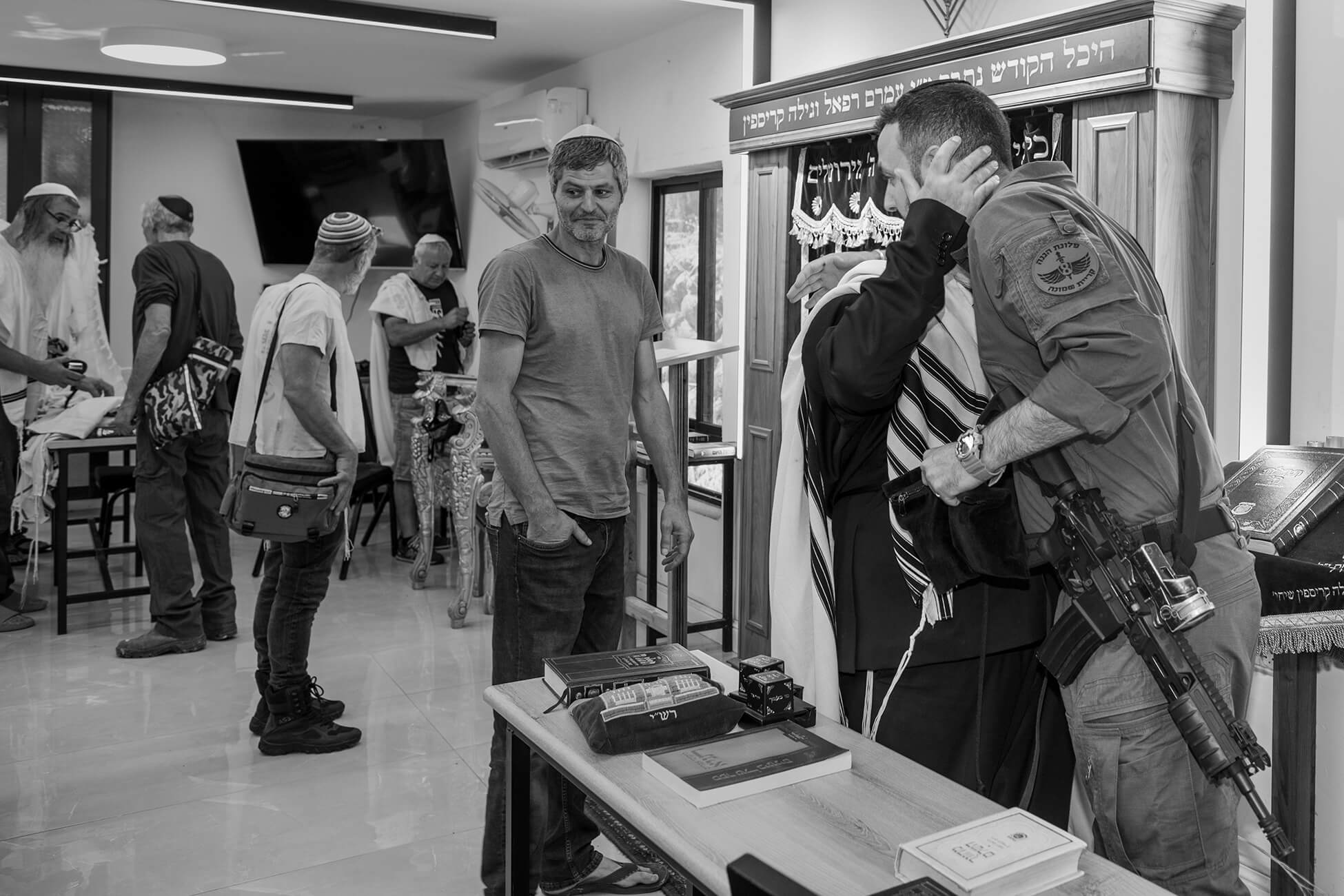 Nine men showed up, including Haziza and Albiliya. One shy of the quorum Jewish law requires for group prayer. A flurry of phone calls ensued by men already wrapped in prayer shawls, including the rabbi himself, imploring any man who answered to drop everything and come pray. A few came rushing in shortly after. Among them was a uniformed border patrol officer who was greeted with an embrace by the rabbi and given the honor of holding the Torah.