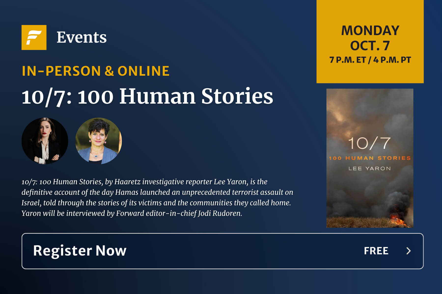 JTA and the National Library of Israel present an online conversation with the authors of three new books about the events of Oct. 7 and the future of the Israeli-Palestinian conflict: Amir Tibon, Ilan Troen and Lee Yaron. Thursday, Sept. 12, 6 p.m. ET. Register here.