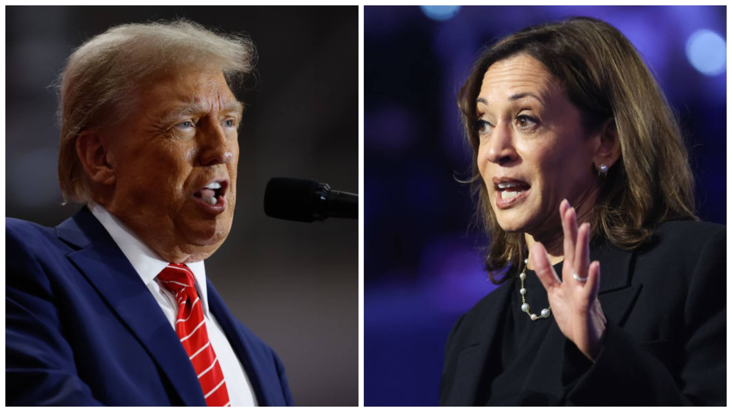 Jewish supporters of Vice President Harris and former President Donald Trump. Photo by DOMINIC GWINN/Middle East Images/AFP via Getty Images / Chip Somodevilla/Getty Images
