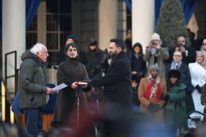 Levine, who is Jewish, took the oath of office on the Five Books of Moses, called the Chumash. “How remarkable is it that on these steps today, we have three swearings-in,” Levine said. “One by a leader using a Quran, one by a leader using a Christian Bible, and one by a leader using a Chumash or Hebrew Bible. I am proud to live in a city where this is possible.”