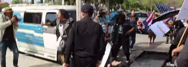 For three long minutes on Saturday, Levin was all that stood between an angry, violent mob and some Ku Klux Klan demonstrators in Anaheim, California, in Levin’s retelling of the episode.