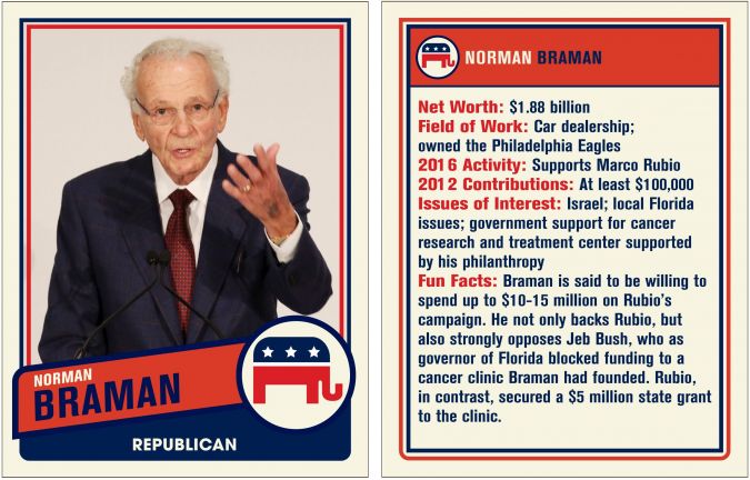 Florida Senator Marco Rubio has locked in top Jewish donor Norman Braman, who has reportedly agreed to spend $10-15 million to make sure Rubio is the next GOP presidential candidate. Braman is an example of a new type of Jewish Republican donor, moving from a generous contributor to a mega-donor, one whose early multi-million dollar pledge makes him a top player.
