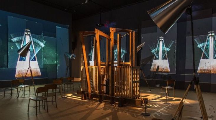 Lately, the modern and contemporary art section of New York’s Metropolitan Museum of Art hasn’t been as quiet as usual. Faint music played at varying speeds can be heard. Partly vocal, partly instrumental, the music sounds vaguely African. The source of the sound is a small, darkened room equipped with megaphones and five video projectors…