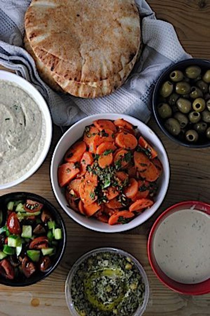 Mezze — a brightly colored selection of dips, salads, olives and pickle vegetables — is ever-present on the Israeli table, both at restaurants and in the home. Much like the small bowls of salads and cheeses that accompany the Israeli breakfast, a variety of mezze will crowd a table along with the requisite breads to…