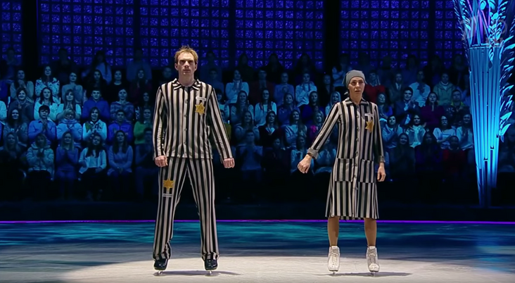 A Russian state-owned television channel aired a figure-skating performance featuring the wife of a senior Kremlin spokesperson wearing the uniform of a Jewish concentration camp inmate. Russia-1 on Saturday showed the performance by actor Andrey Burkovsky and Tatiana Navka, a professional figure skater who is married to Dmitry Peskov, a spokesperson of Russian President Vladimir…