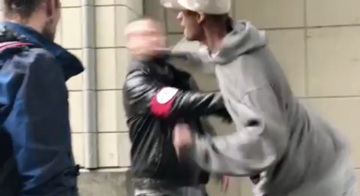 Seattle police said that they were responding to a viral video of a man wearing a swastika armband getting punched in the street. The Seattle Police Department said that they responded within five minutes to the scene, where they found the swastika-wearing man on the ground. The victim “declined to provide info about incident &…