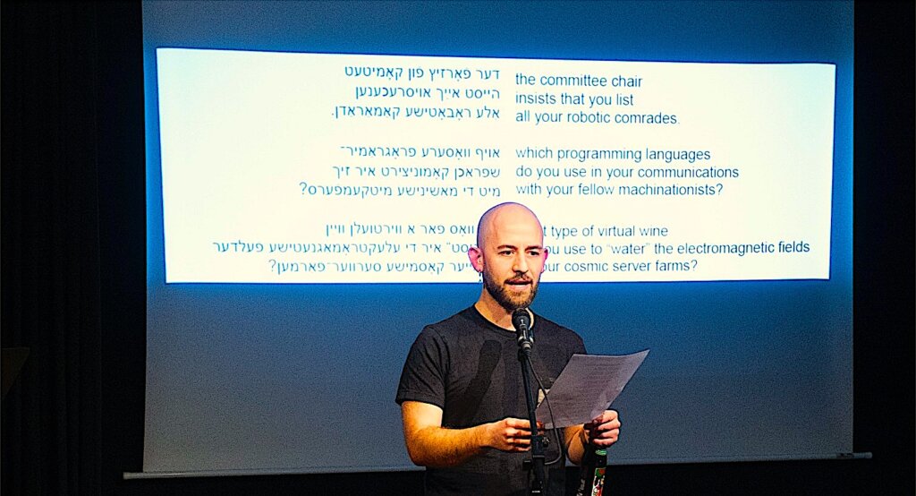 The open format also worked well for Shoshana Simons, who presented her poem “Across The Shtetl Multiverse,” a synthesis of interviews she’s been doing with Jewish women across the diaspora about their relationships with Jewish identity and the concept of liberation. She presented the poem in her native language, English, before it was read aloud in a Yiddish translation.