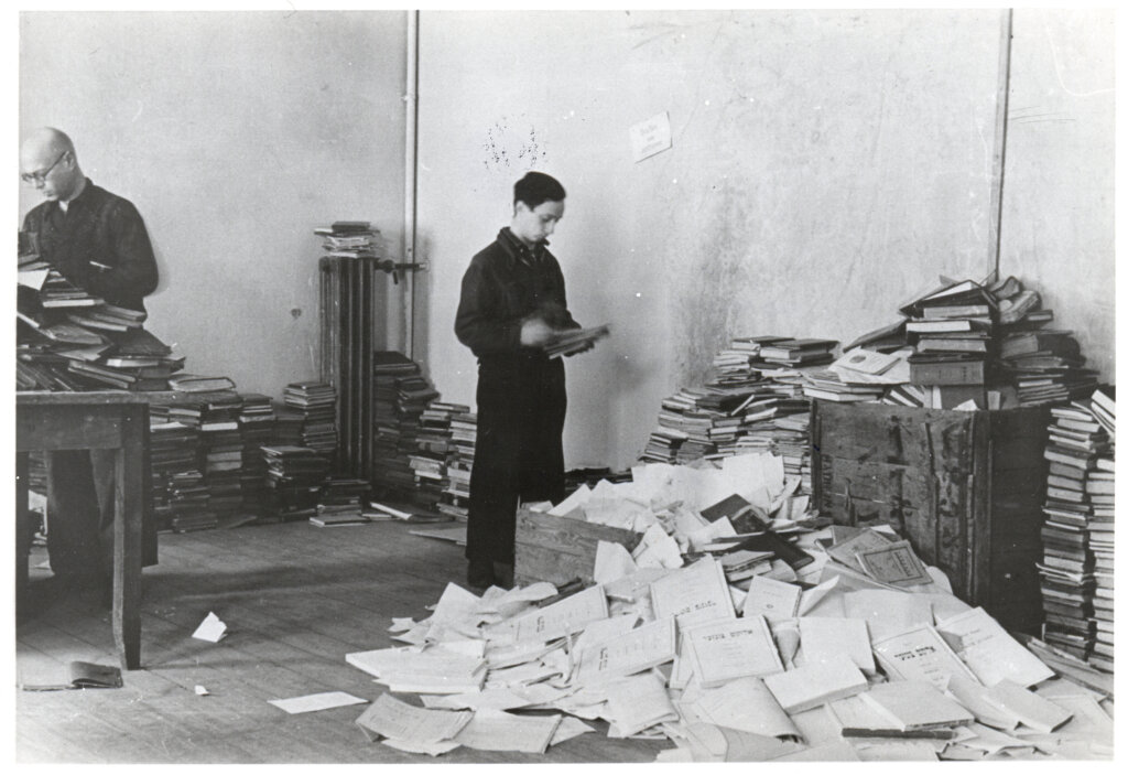 Weiser and Kaplan drew my attention to another important source of inspiration — historical images from the Vilna Paper Brigade, an extraordinary episode in YIVO’s history involving the rescue of Jewish books and documents from under the Nazi’s noses.
