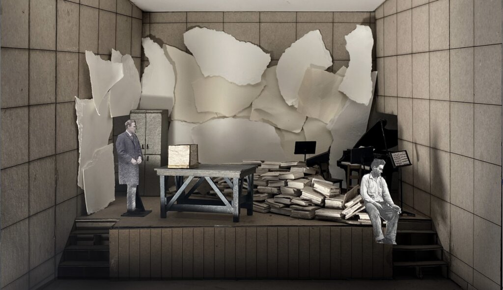 Rebecca Miller Kratzer, the director of the staged production, gave me a taste of how the imagery will enhance the dream-like mood. “The singers will be engulfed by paper in different proportions and scales,” she said. She explained that some of the paper will be tangible and sculptural, part of the actual sets. But the staging will also use digital projections. The combination of physical and projected imagery will move the action between the scholarly world of books and card catalogs at YIVO, and the mystical world of the three alephs — the realm of memory and mourning, sometimes touched with a flicker of humor.