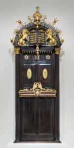 When Shaare Zion closed, Rabbi Whiman saved the ark, and as he traveled from one post to the next, the ark traveled with him. The MFA’s Conservation department returned the ark to its fine, elegant form, with its gilded lions, Magen Davids, an eagle and flowers on the top, and in the middle — two gilded hands of Kohanim (Jews of the priestly class) giving a blessing, thumbs touching, all gleaming against the dark wood.