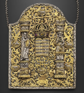 The majority of the objects in the new gallery are now on display for the first time. The masterpiece in the center of the room is a silver Torah shield from Galicia, probably from Lvov, (now Lviv) in Ukraine, created in 1781-82. “This is a treasure not just of the gallery, of the Judaica collection, but of the European silver collection,” Di Nepi said.